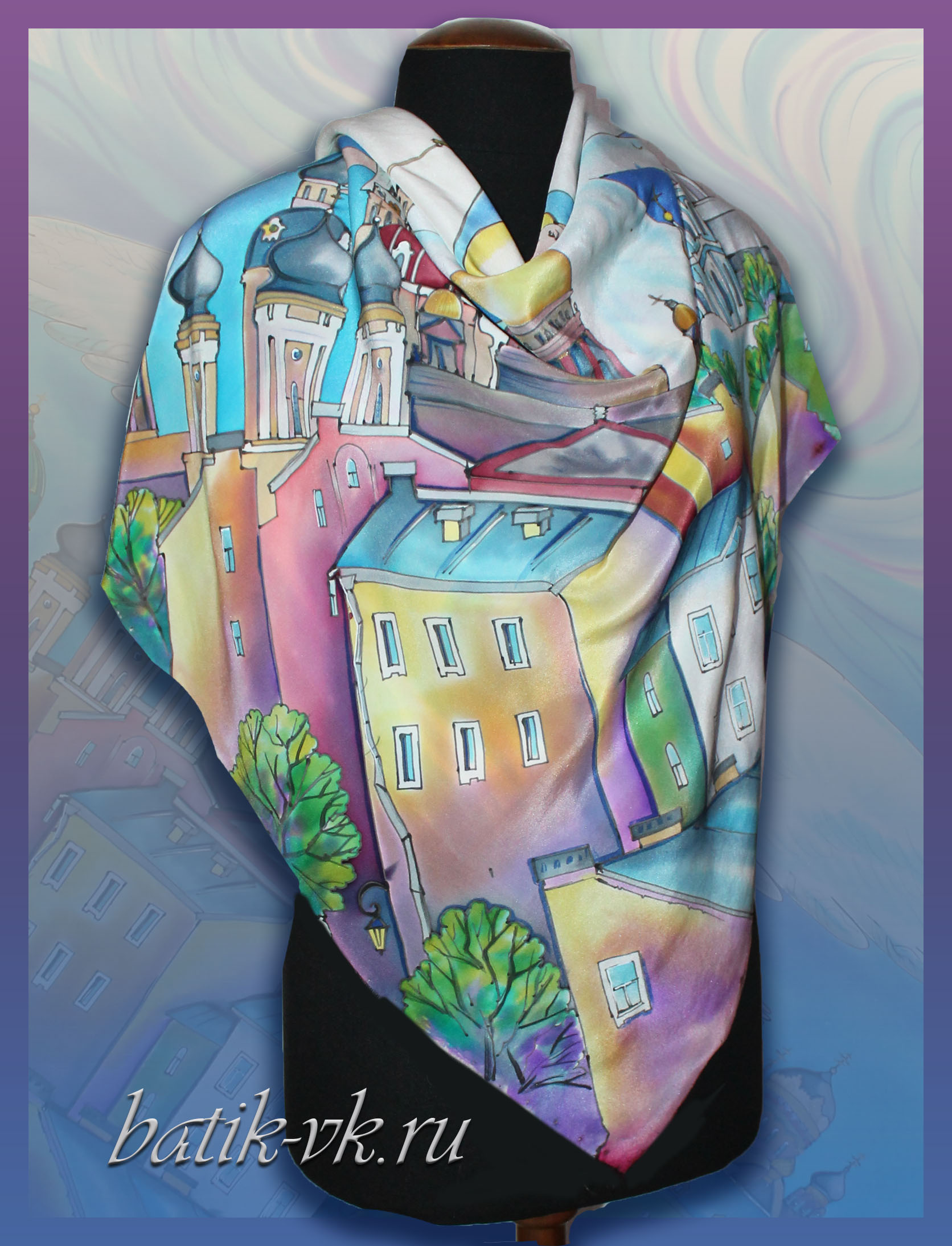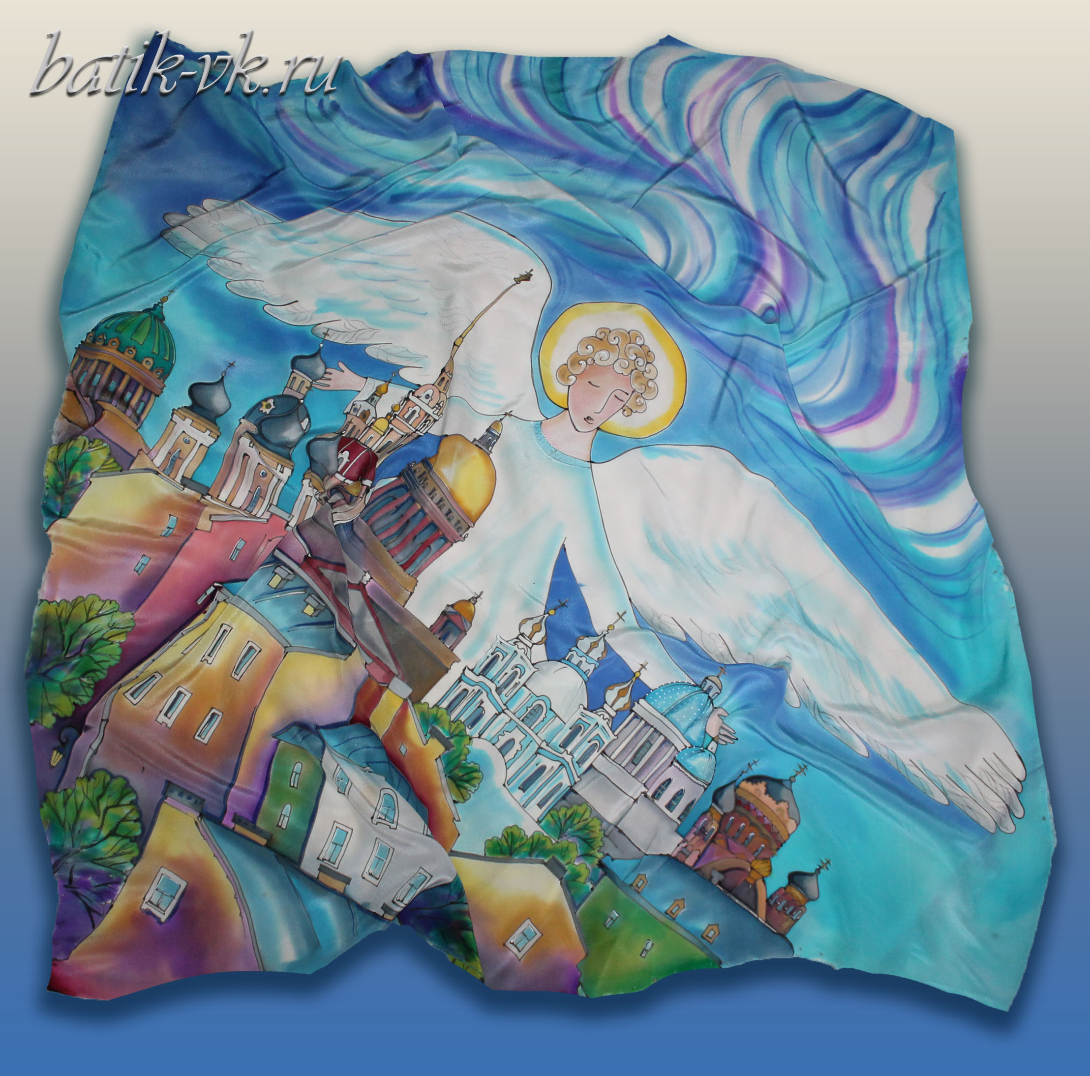 Главная страница » Галерея » Без рубрики » Батик-платок: «Ангел над Петербургом»